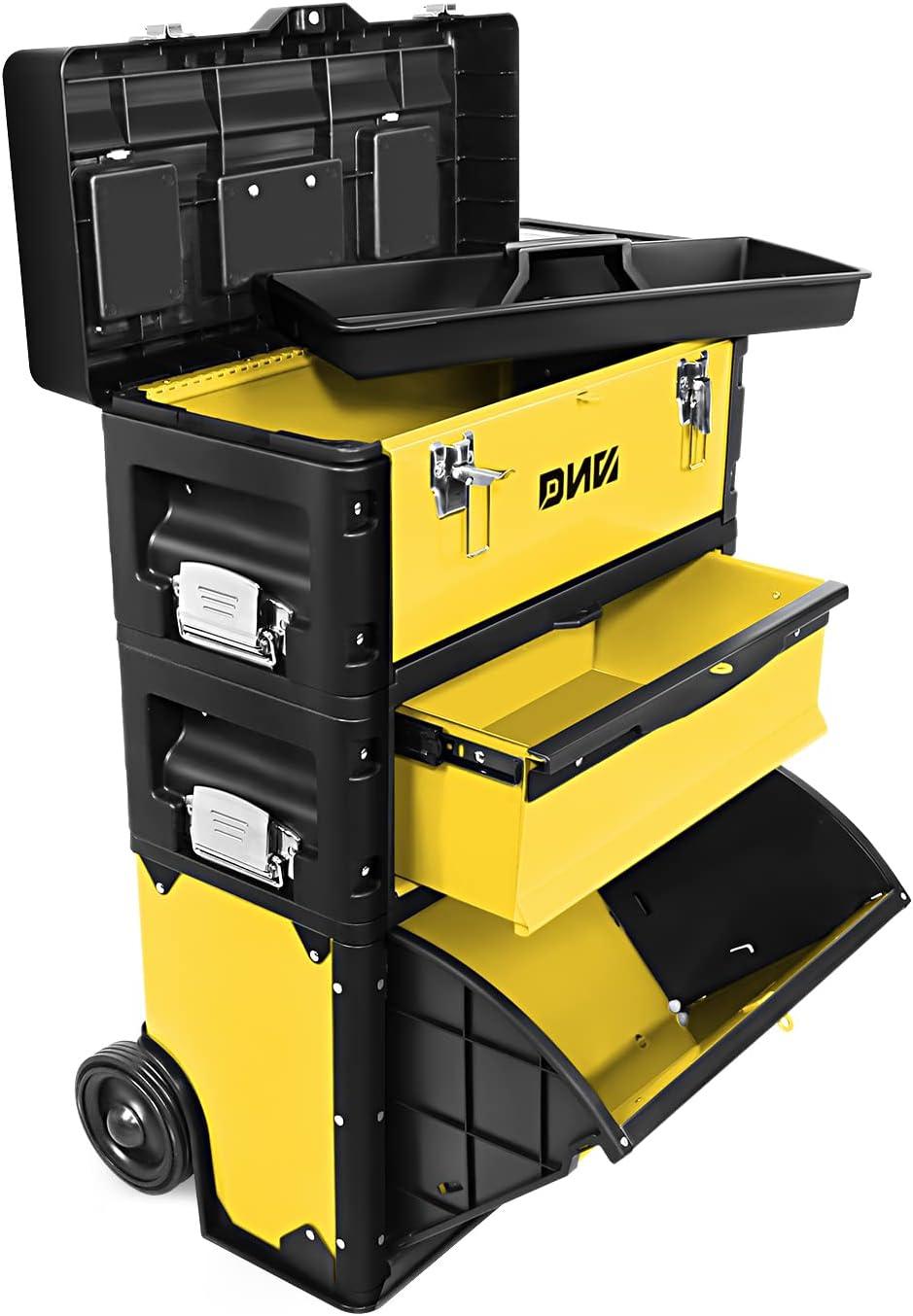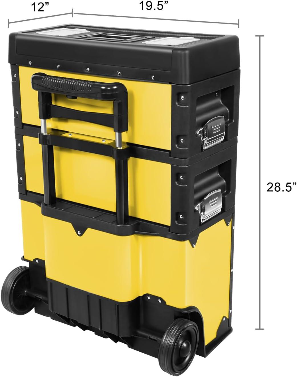 Advanced Design: Portable, Rolling Upright Tool Box Is Composed Of 2 Stackable Separate Parts, With Extendable Handle, Allows the Tool Storage Box Set to be Flexibly Moved. And Both Tool Boxes have Heavy-duty Handles on them for Easy Carrying.