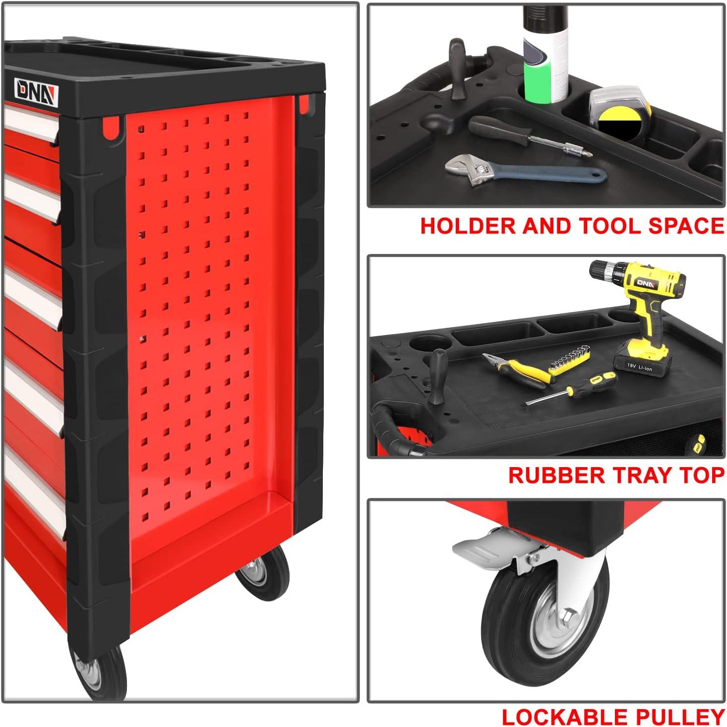 Great Loading Capacity: A High-Capacity Rolling Tool Cabinet Consists Of A Small Box And A Large Box. Top Storage Box Can Store Small Parts, Easy To Find And Avoid Loss, The Bottom Deep Toolbox For Large, Heavy Items. The Compartments On The Top Can Be Used To Store Small Accessories.