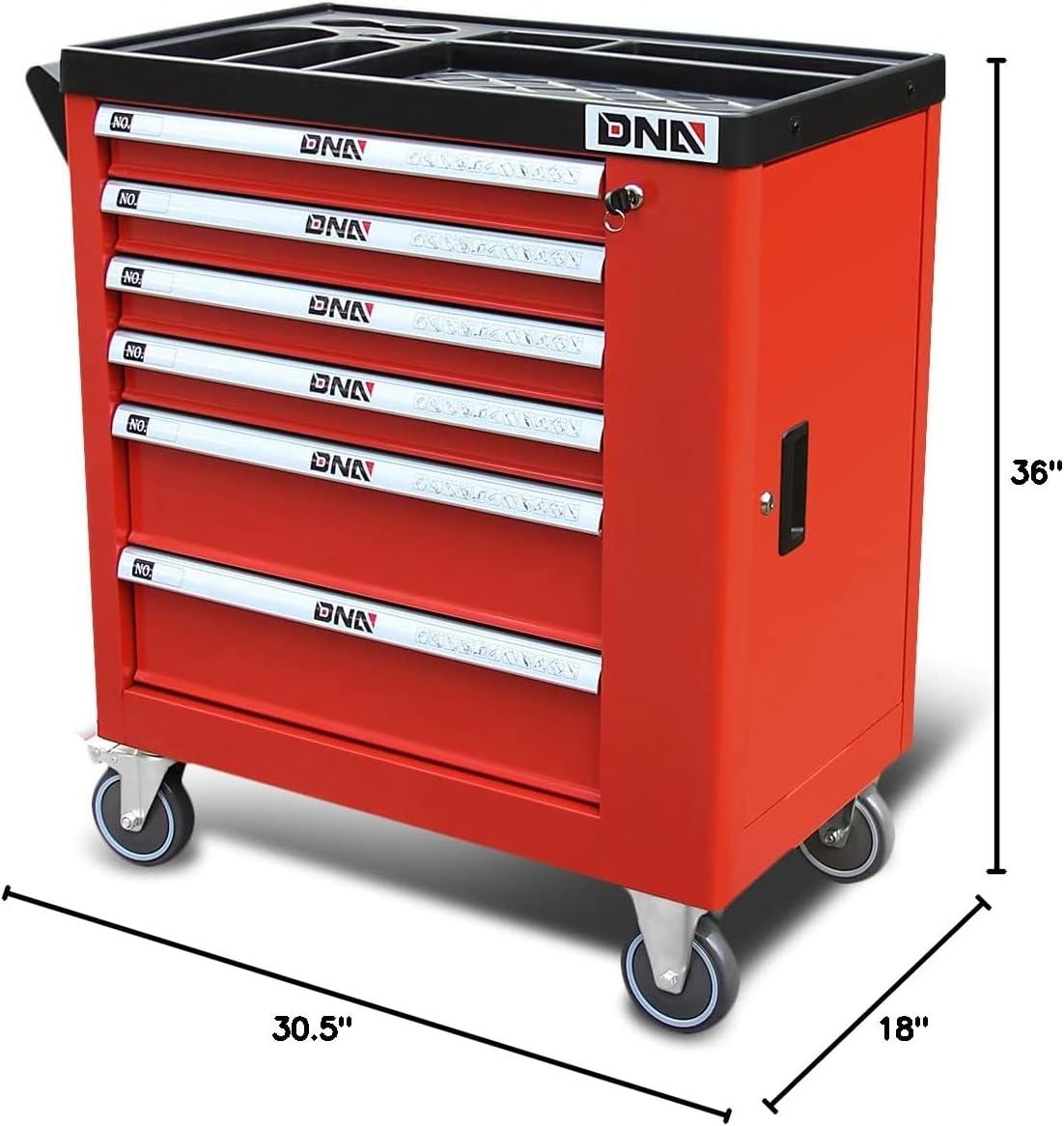 DNA MOTORING 30″ W X 37″ H X 18″ D Large Capacity 4-Drawer Chest Rolling Tool Cart Locking Swivel Cabinet (TOOLS-00003) with Keys, Black(6-Drawer-Upgrade Corner Package)