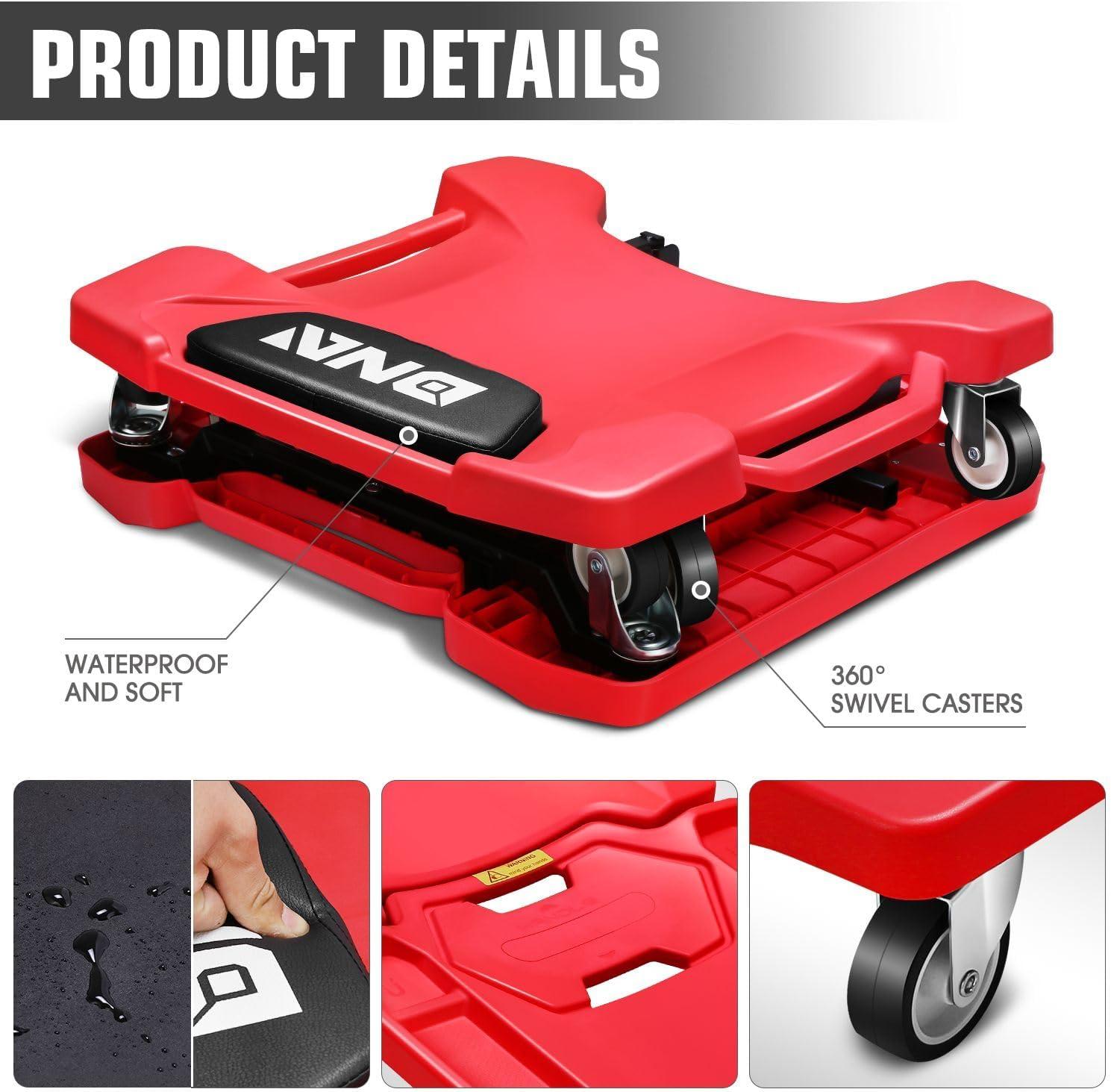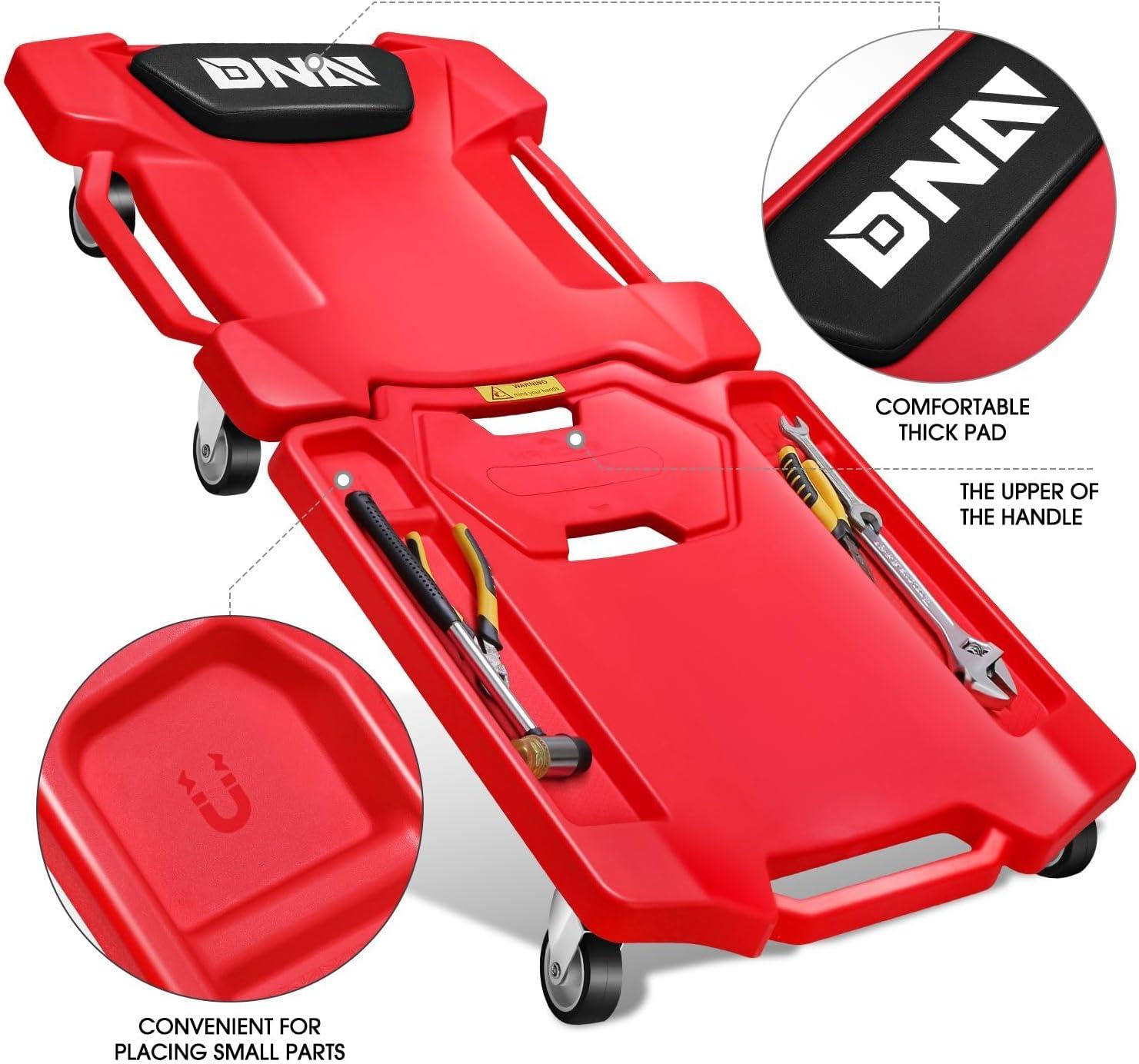 DNA MOTORING 40 Inch Mechanic Creeper, Blow Molded Low Profile Rolling Garage Creeper, w/Padded Headrest, Dual Tool Trays, 350lbs Capacity, Red, TOOLS-00005(Red)