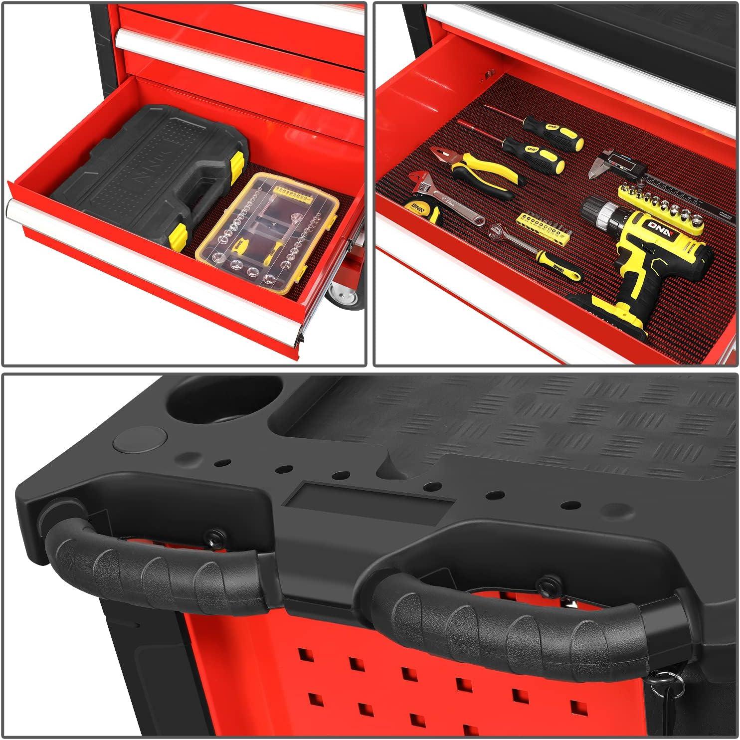 DNA MOTORING 5-Drawer Rolling Tools Chest, Rolling Tool Storage Cabinet, Mechanic Tool Cart, Trolley Organizer for Garage, Warehouse, Workshop, w/ Keys, Red, Upgrade Package, TOOLS-00001(7-Drawer Chest)