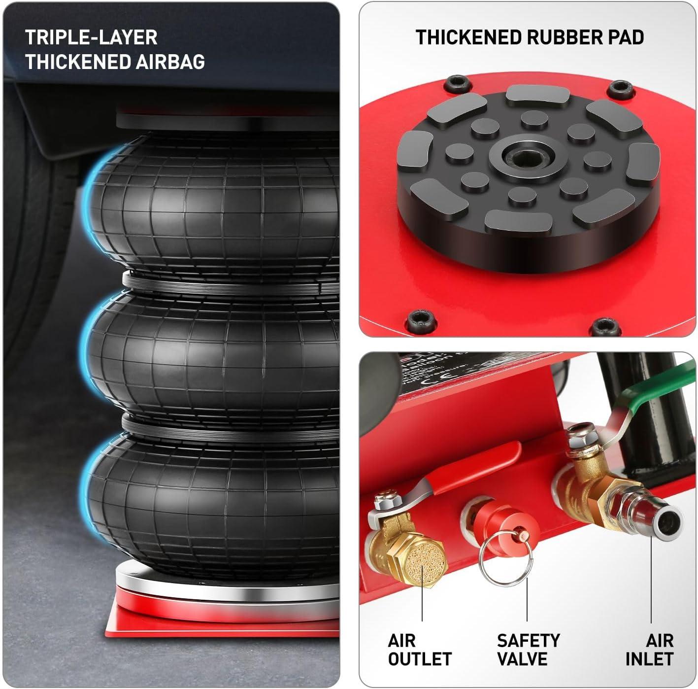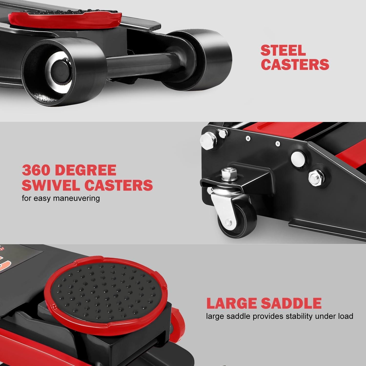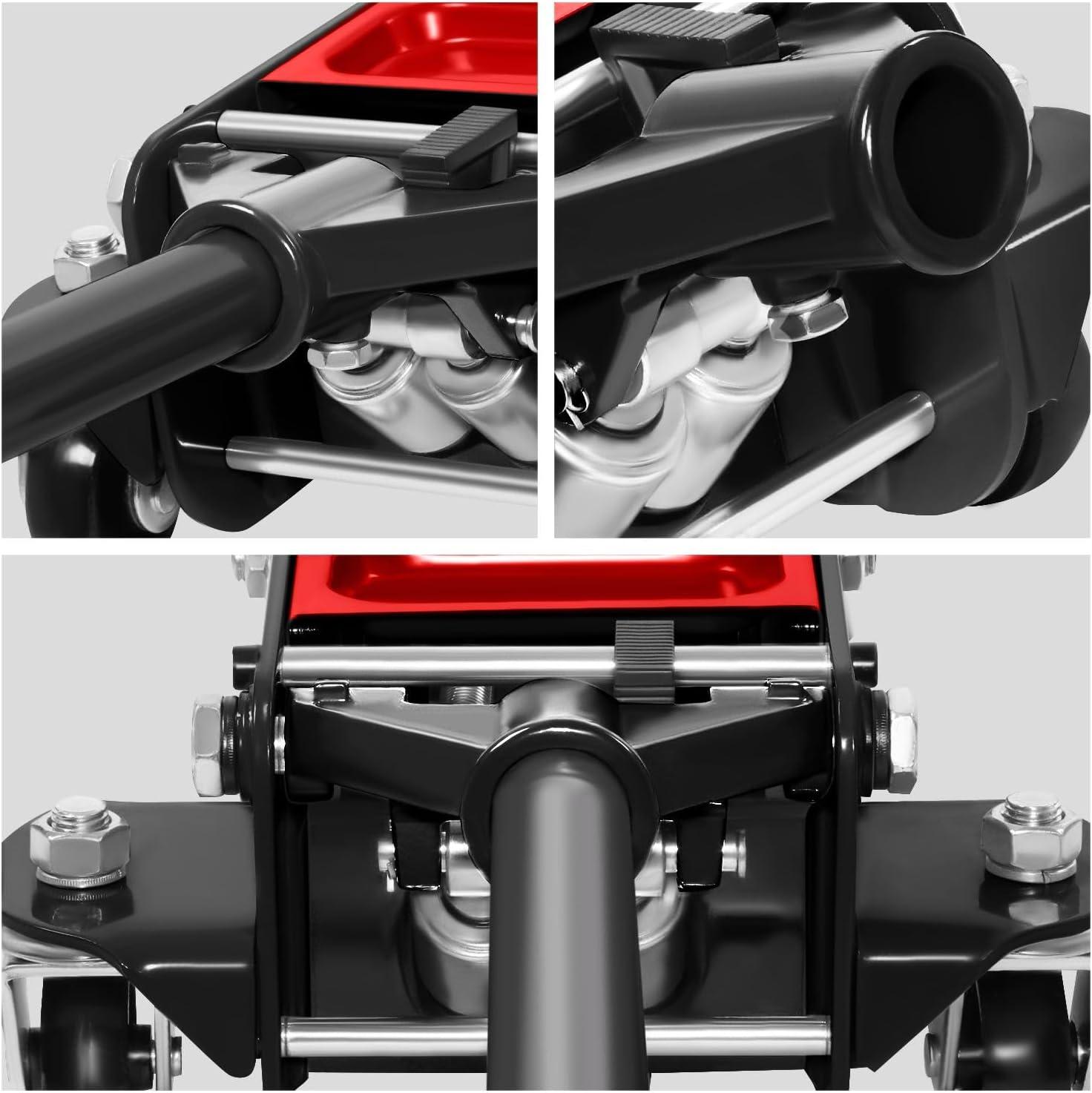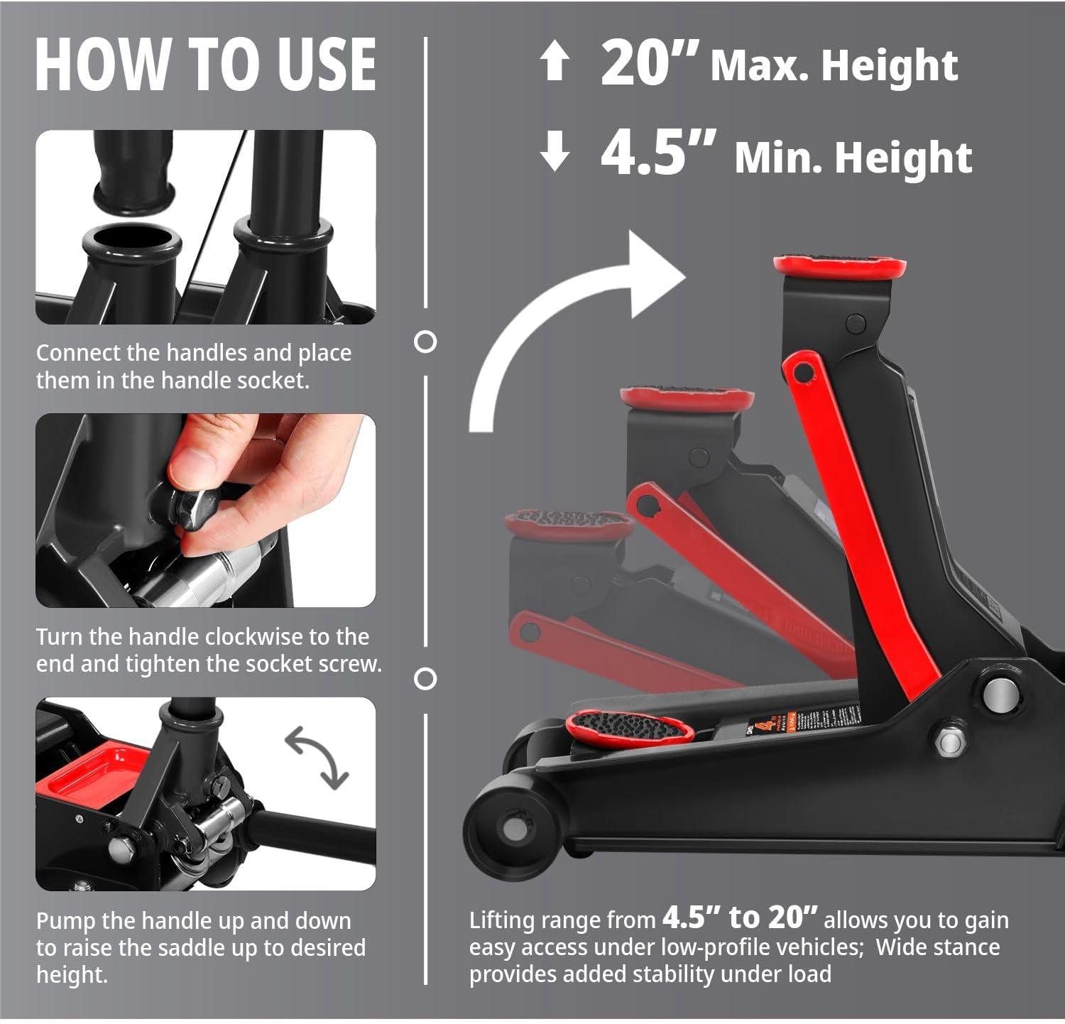 OVERLOAD PROTECTION & EASY JACK POSITIONING – Built-in dependable safety release valve triggers in the event of an overload to prevent damage or injury. The large saddle equipped with rubber pad provides extra stability and helps protect your vehicle.