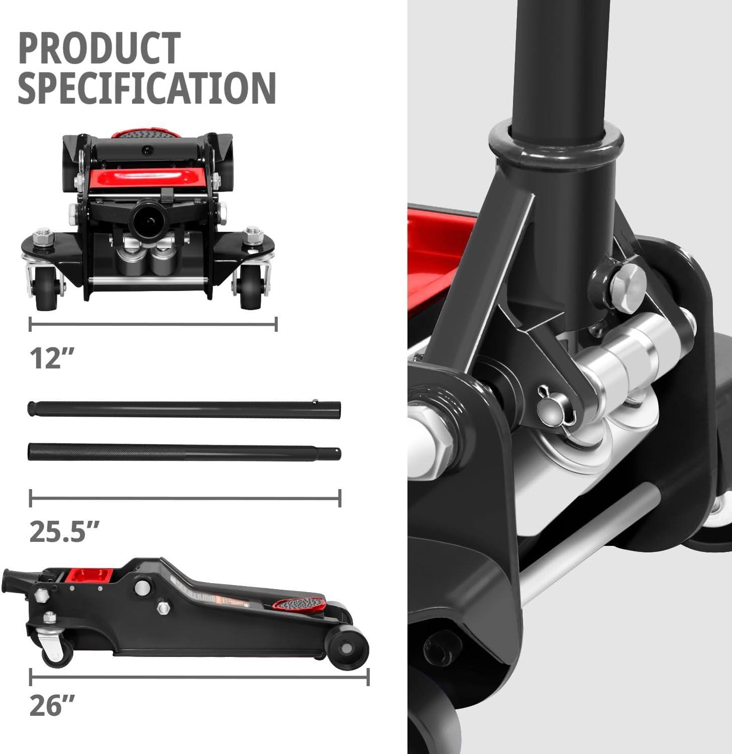 DNA MOTORING Low Profile Hydraulic Trolley Service/Floor Jack, 3 Ton (6000 lbs) Capacity, Lifting Range 3″-20″, TOOLS-00235(Black)