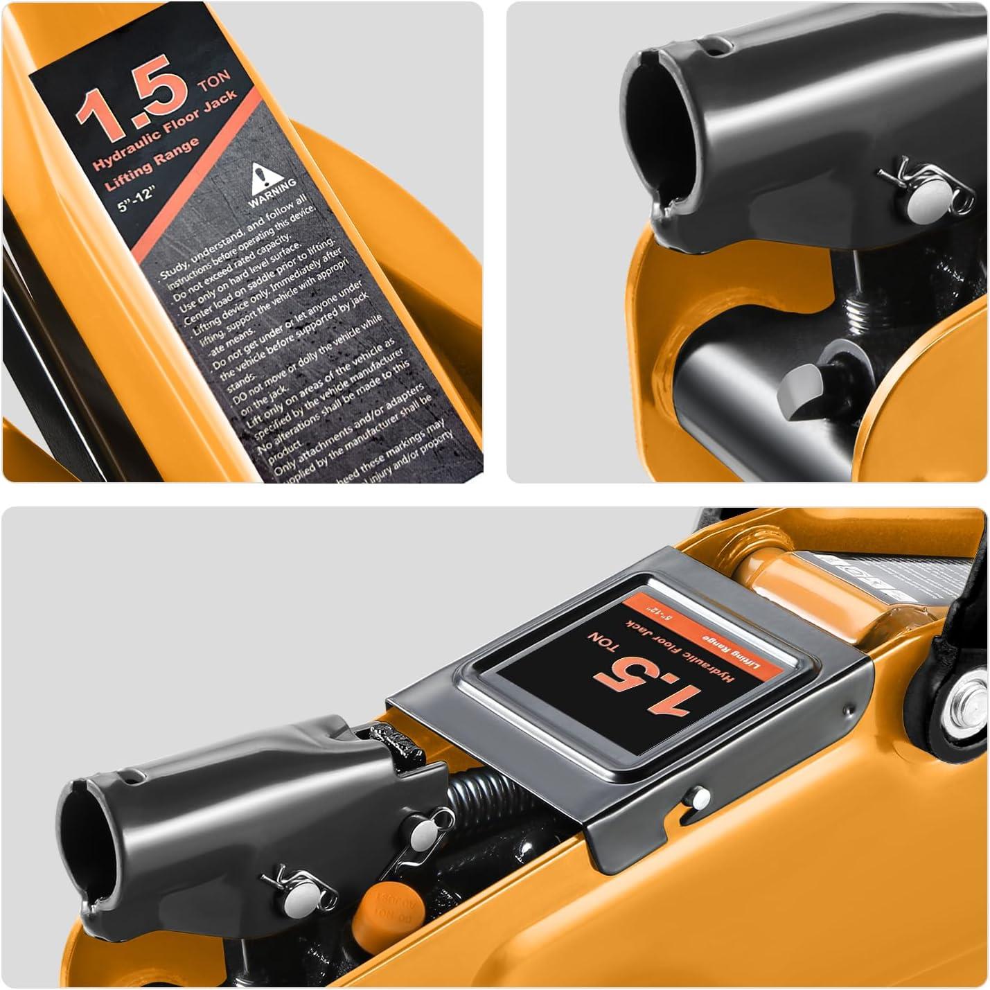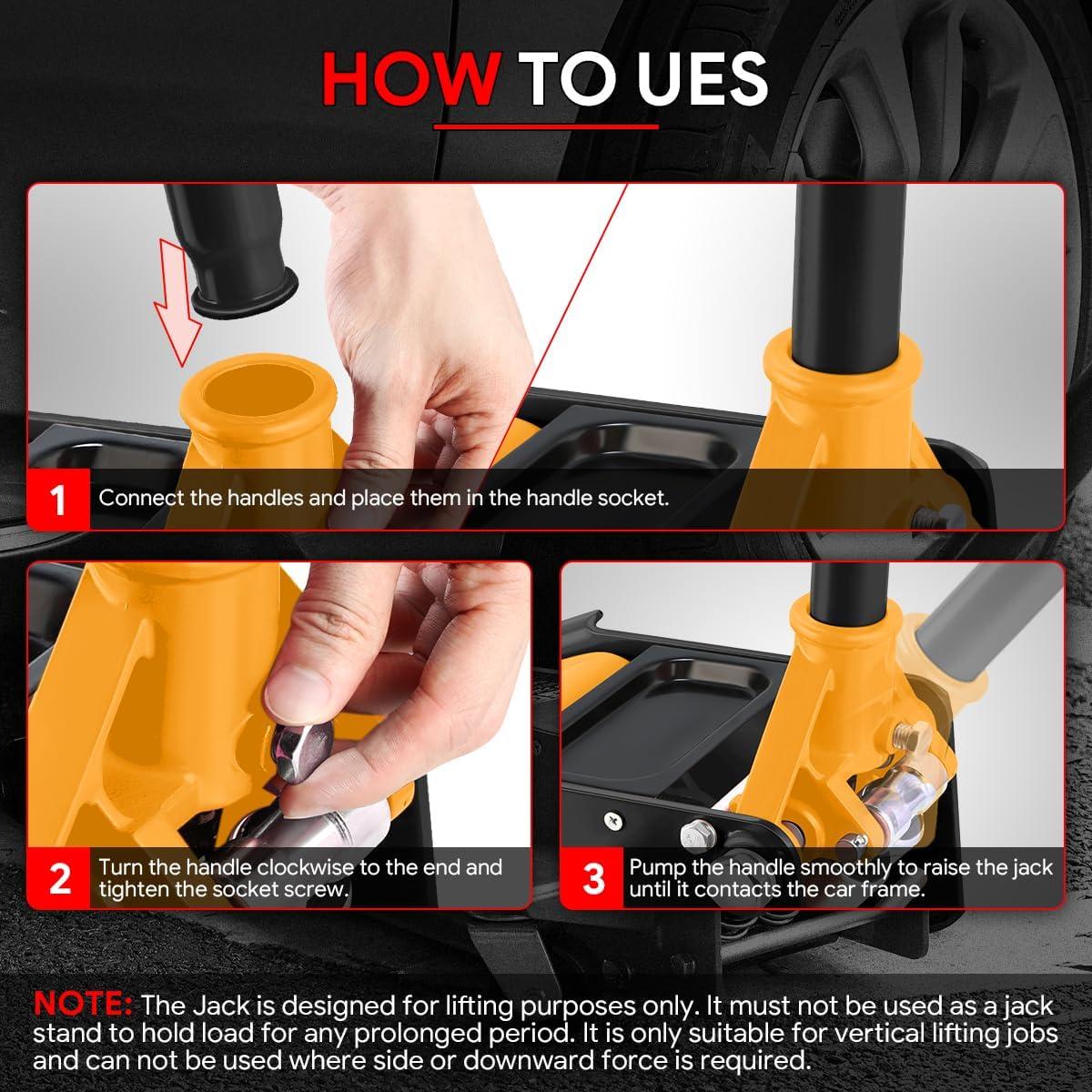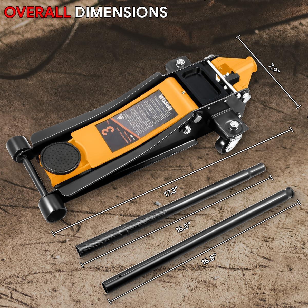OVERLOAD PROTECTION & EASY JACK POSITIONING – Built-in dependable safety release valve triggers in the event of an overload to prevent damage or injury. The large saddle equipped with rubber pad provides extra stability and helps protect your vehicle.
