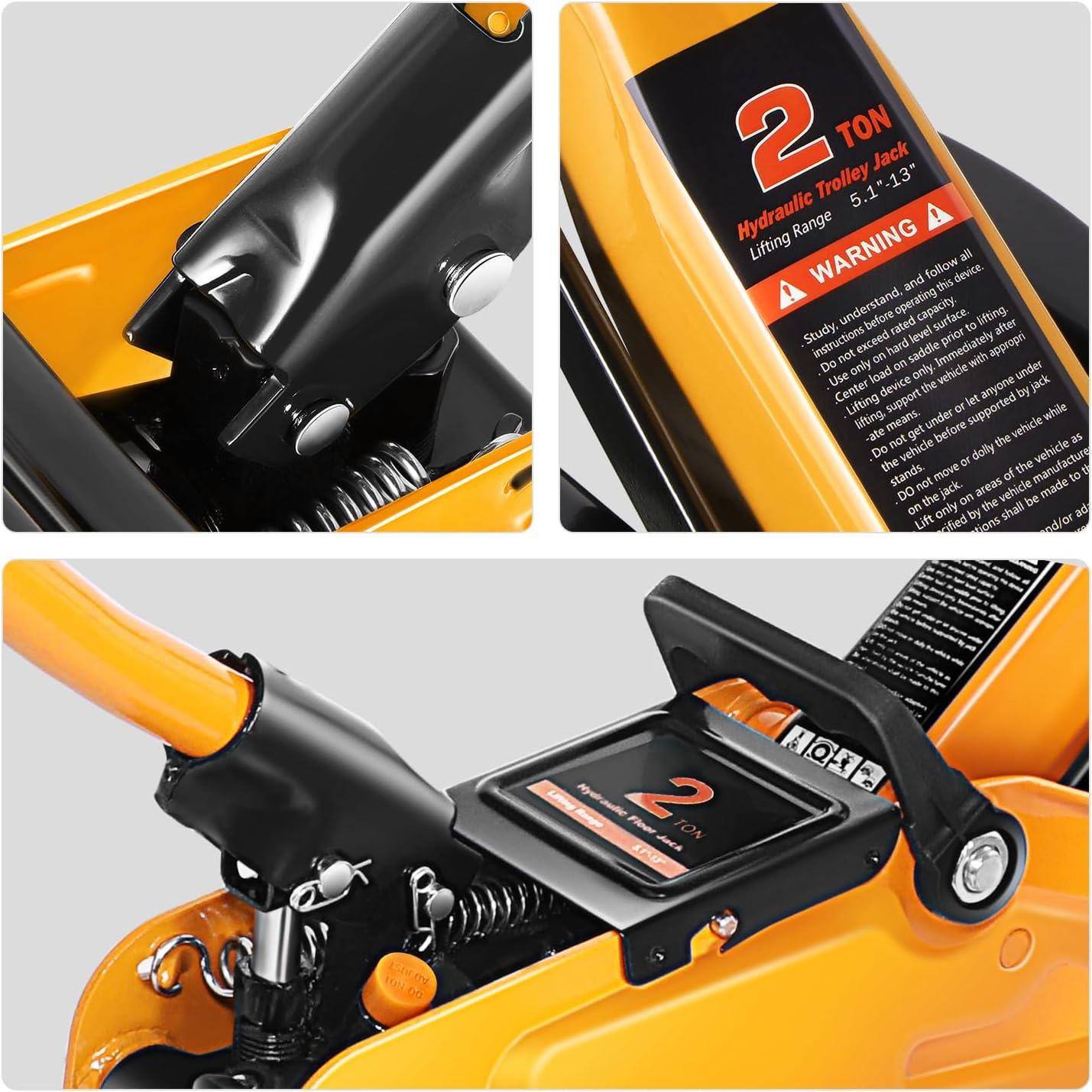 FAST LIFT GARAGE JACK – The hydraulic low profile floor jack features a 2 ton (4,000 lb) capacity with a min lifting height of 5.1″ and a max height of 13″. Designed with large steel casters and swivel casters for rolling without a hitch for letting you maneuver with ease and easy positioning.