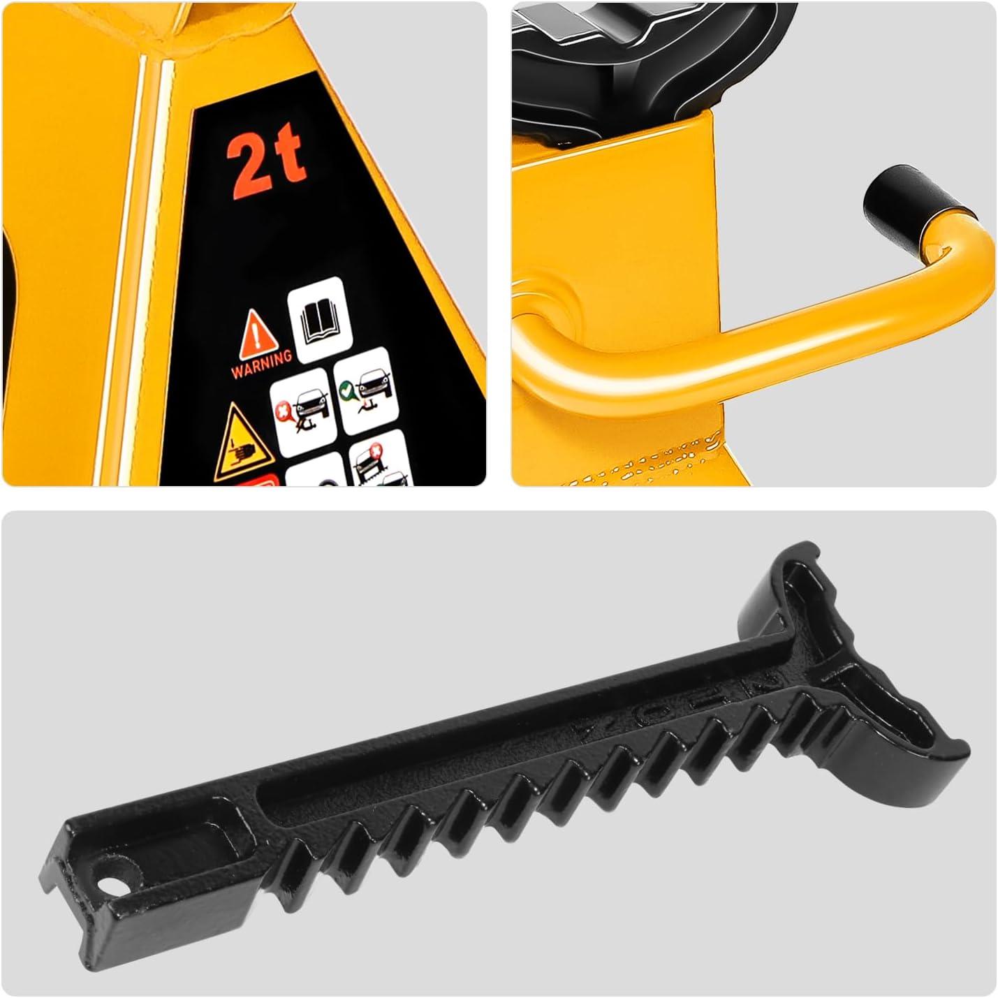 PROTECTION DESIGN – Integrated overload protection valve prevents you from lifting items weighing more than the jack's capacity. The large saddle provides extra stability and helps protect your vehicle. Jack stands have locking lever design for extra protection.