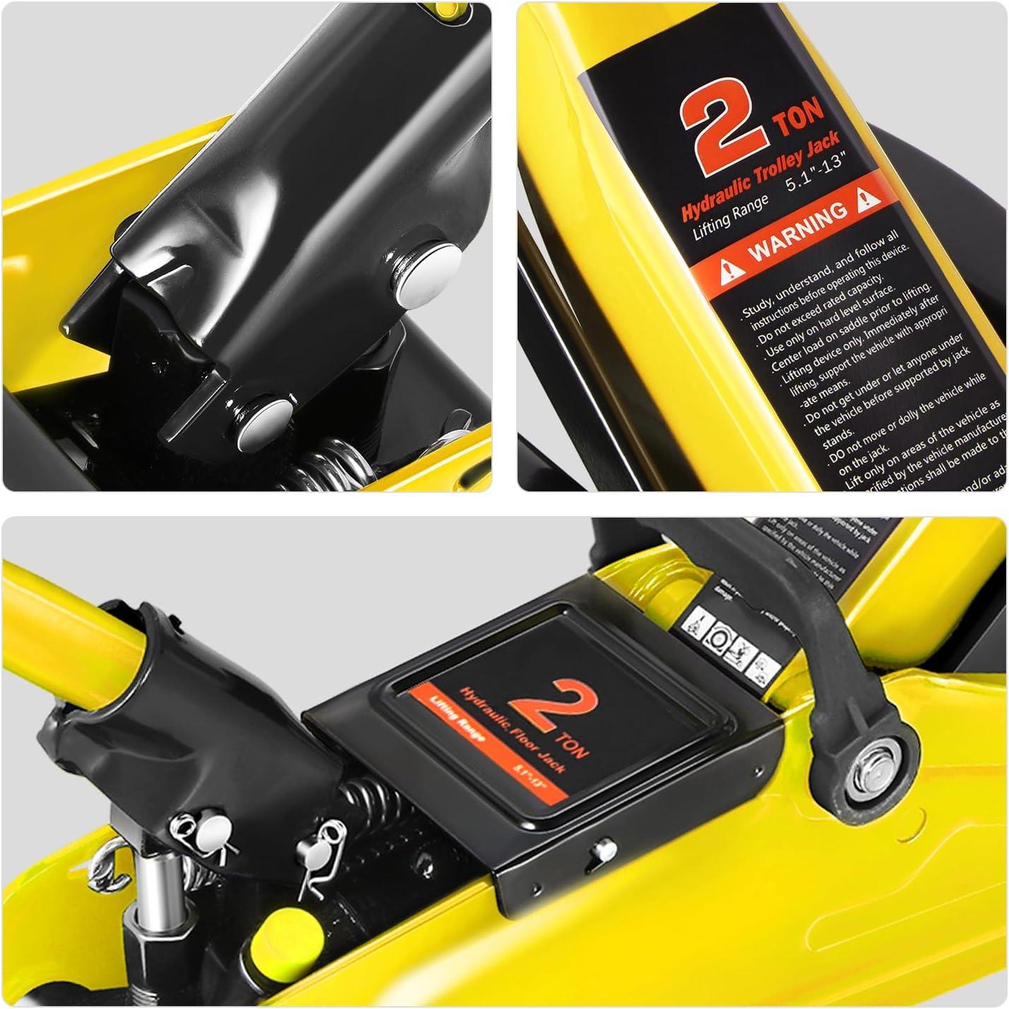 DNA MOTORING Low Profile Hydraulic Trolley Service/Floor Jack Combo with 2 Ratchet Jack Stands, 2 Ton (4000 lbs) Capacity, Red/Black, TOOLS-00280(Yellow)