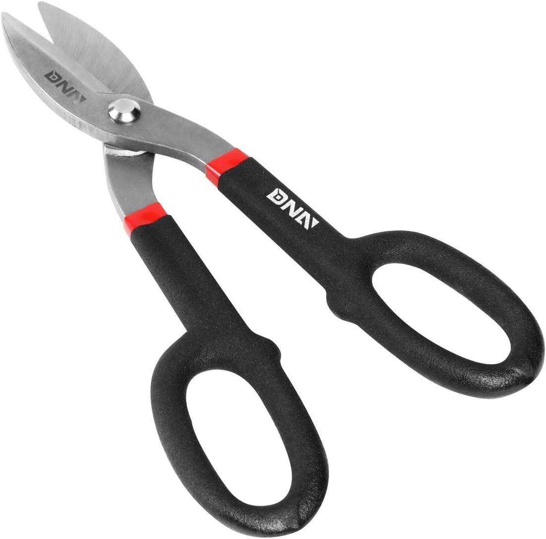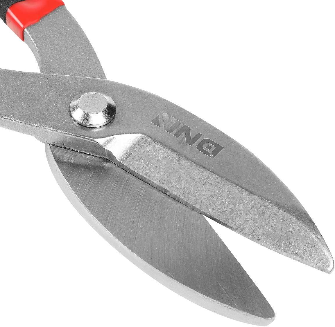 DNA MOTORING TOOLS-00111 3 Piece Aviation Tin Snip Tool Set, 10″ Serrated Jaws, Includes Straight, Left, and Right Cut, Heavy Duty High Carbon Alloy Steel, Multipurpose, 1 Set, Multicolor(Flat Blade Straight Tin Snip)