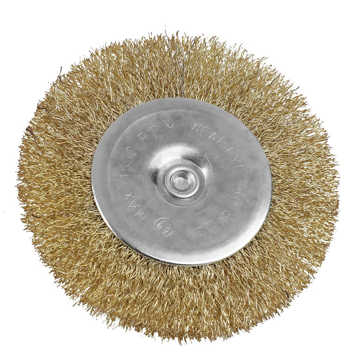 DNA MOTORING TOOLS-00124 4 Inches Brass Coated Bristles Wire Wheel Brush with 0.2-Inch Shank for Rust Paint Removal Surface Polishing