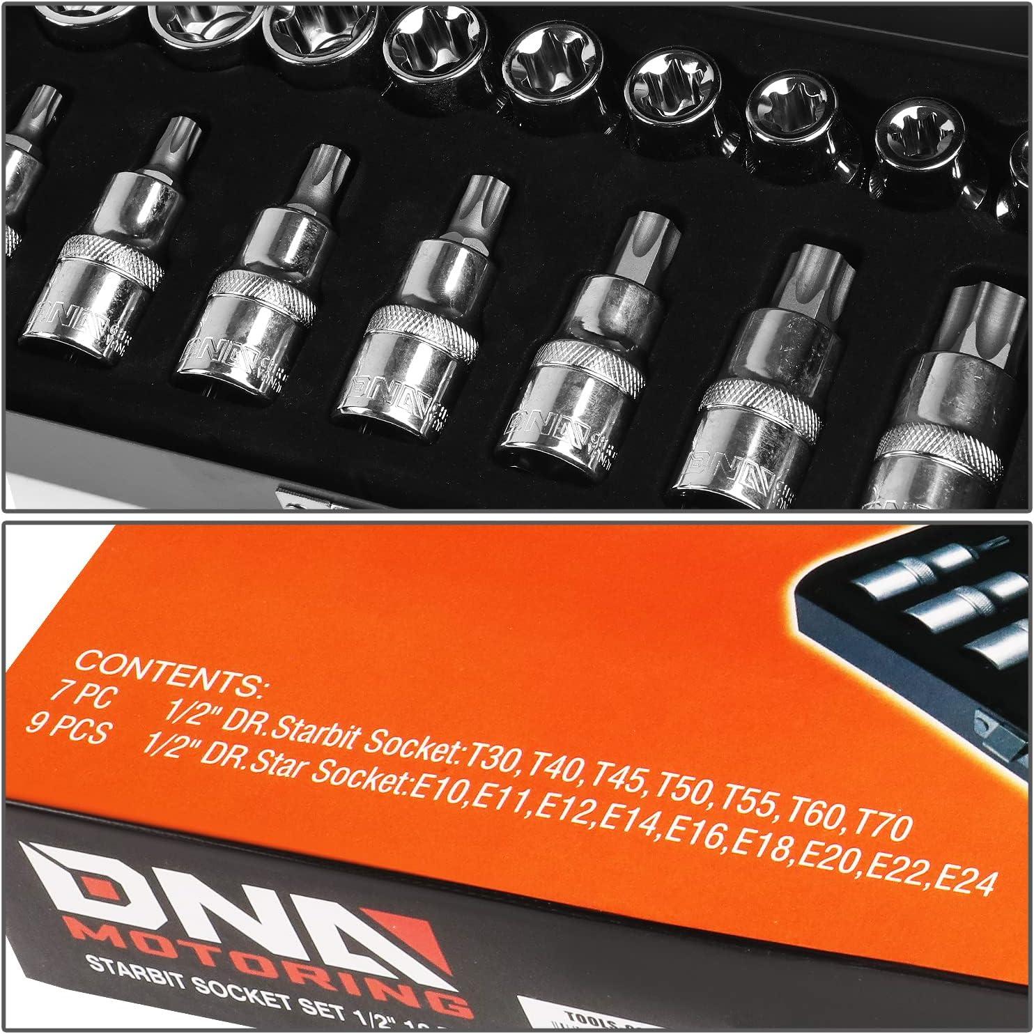 DNA Motoring TOOLS-00133 9 Pieces 1/2-Inch Drive External Torx Socket Set – E10, E11, E12, E14, E16, E18, E20, E22, E24, w/Tin Carrying Case(External & Internal Torx Socket Set)