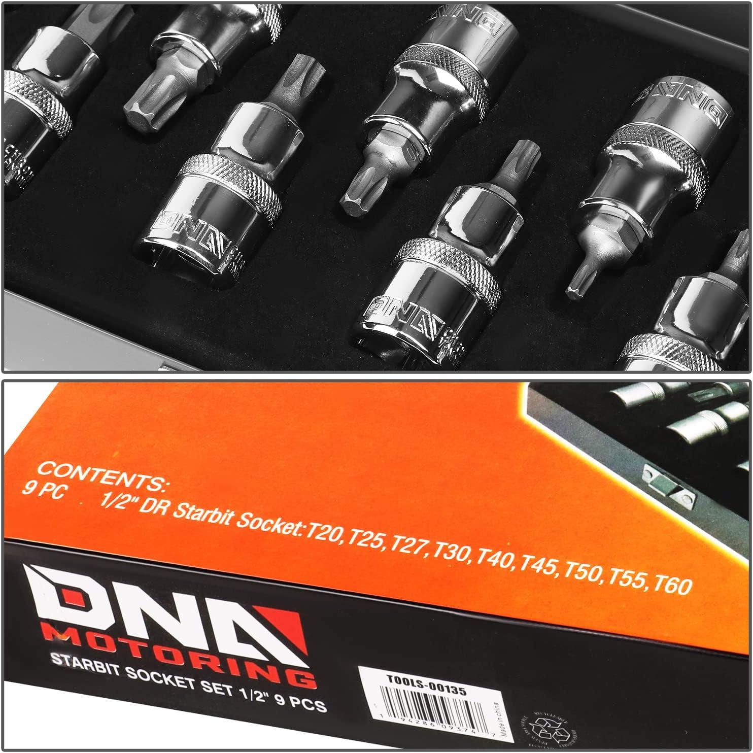 DNA Motoring TOOLS-00133 9 Pieces 1/2-Inch Drive External Torx Socket Set – E10, E11, E12, E14, E16, E18, E20, E22, E24, w/Tin Carrying Case(Internal Torx Socket Set)