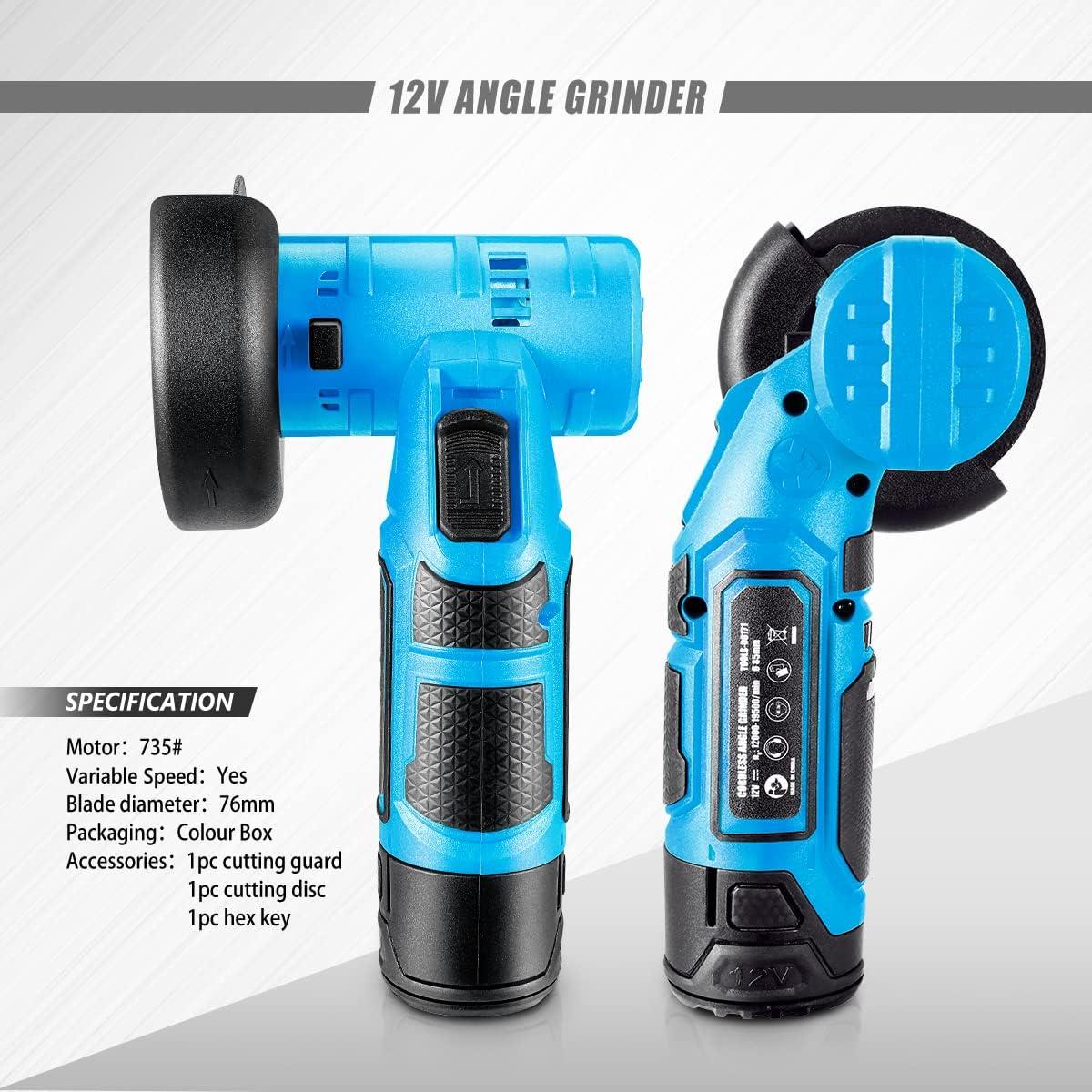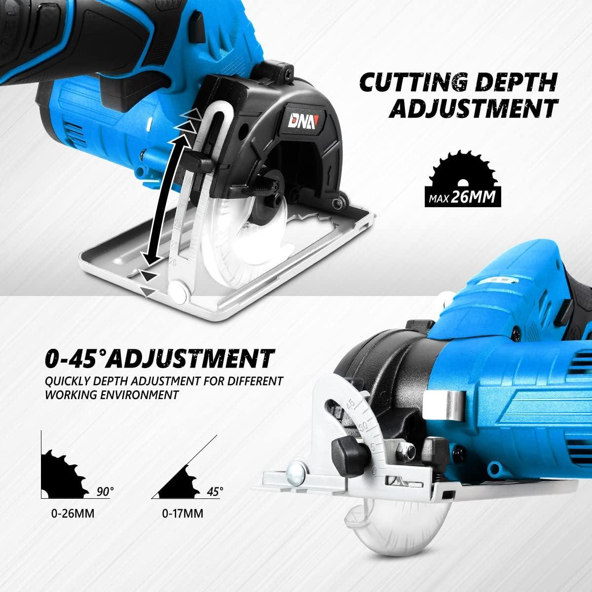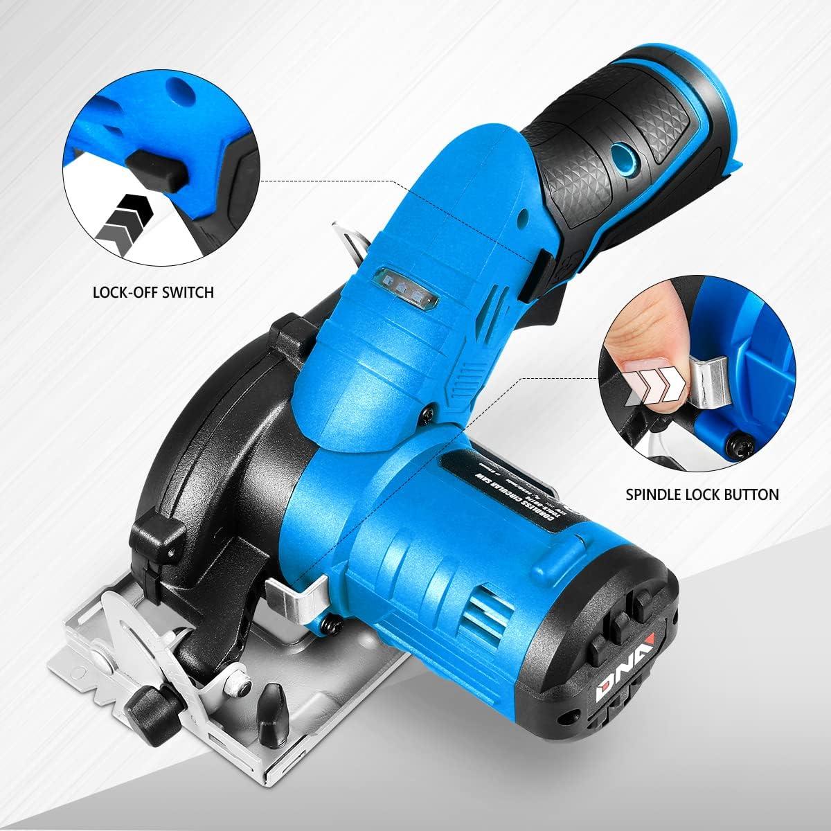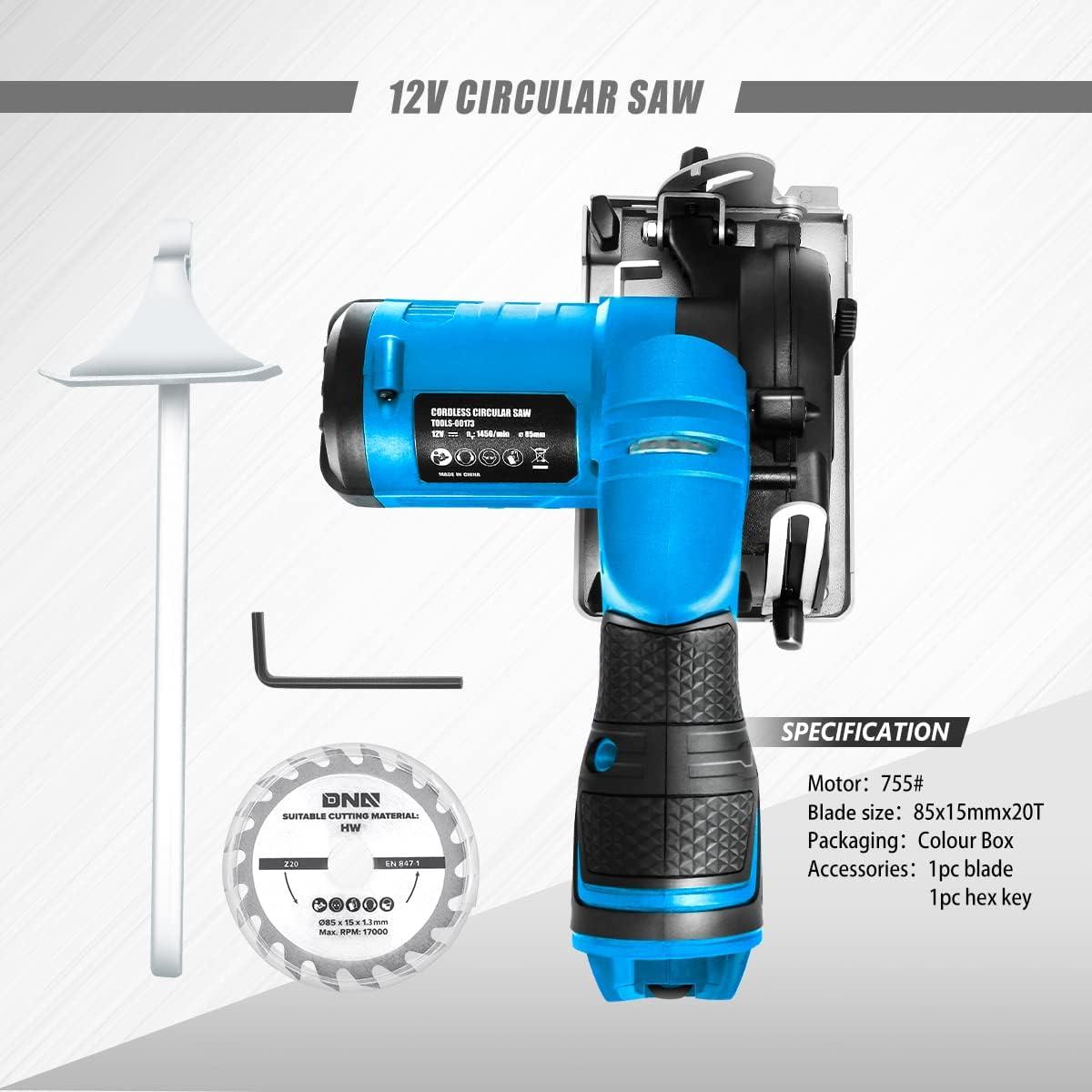 DNA MOTORING TOOLS-00173 12V Compact Cordless Circular Saw with 85mm 20T Blade and Hex Key, Adjustable Cutting Depth/Angle, Blue (Tool Only)(Blue)