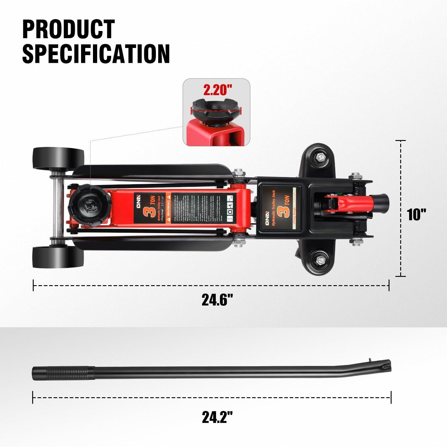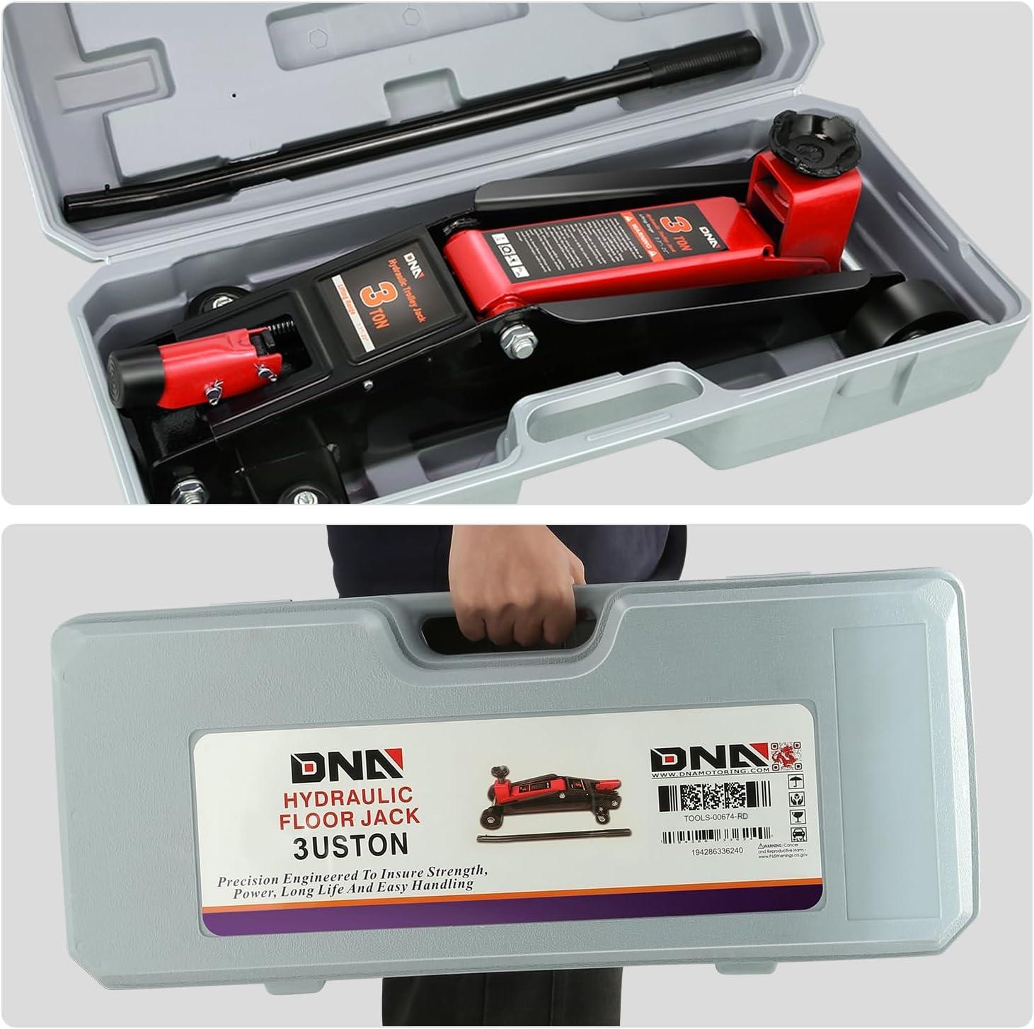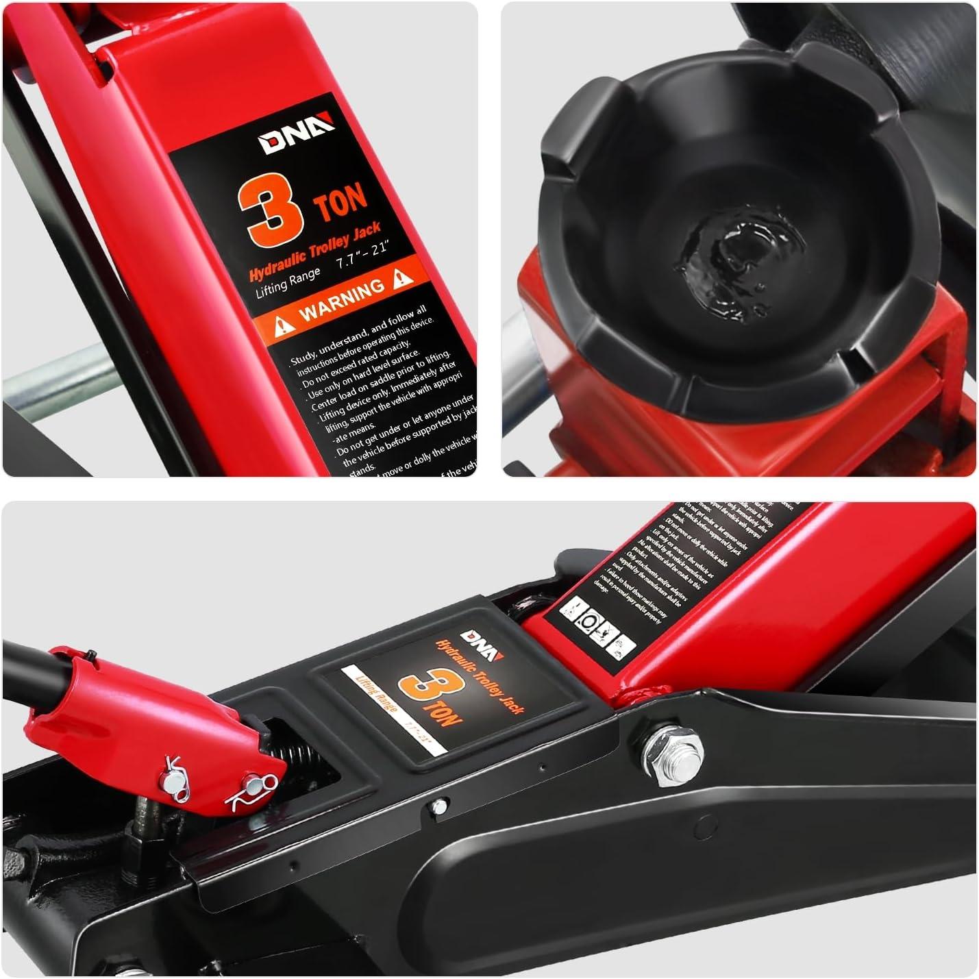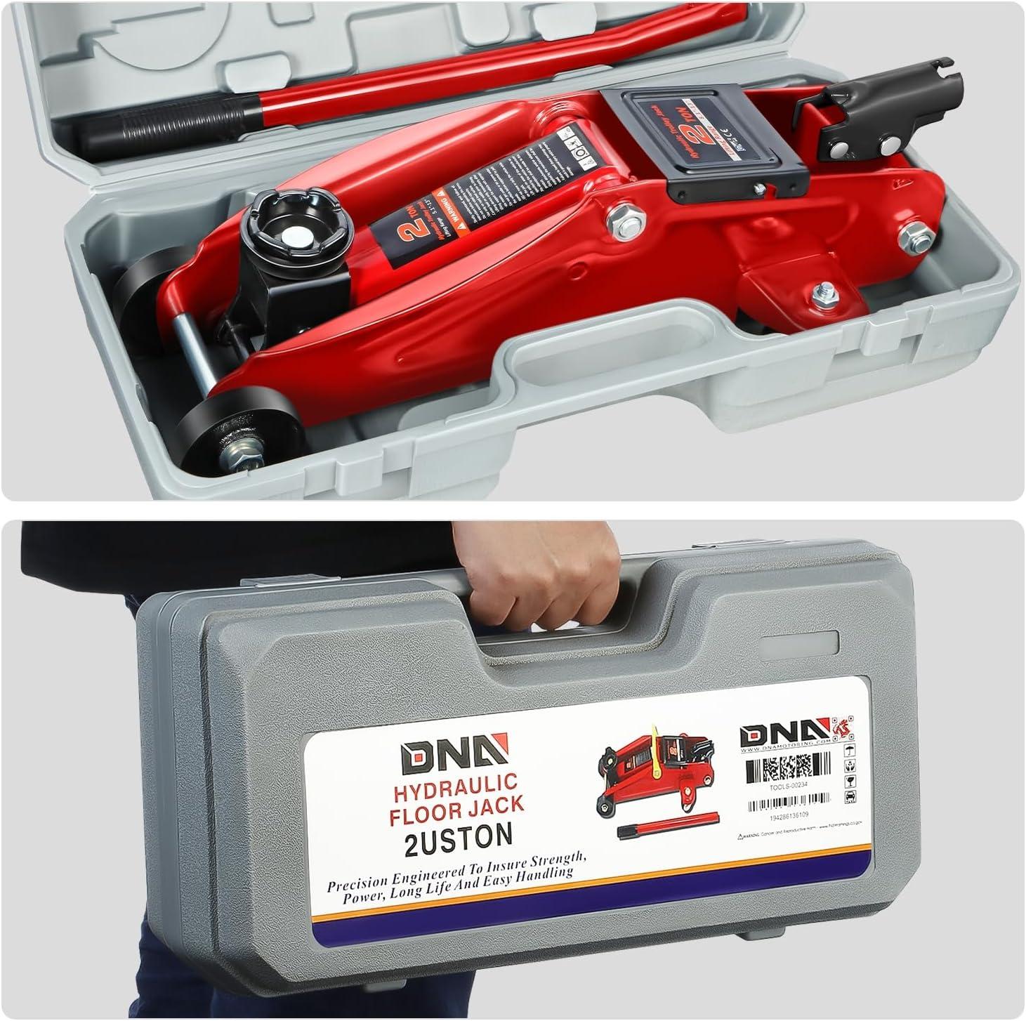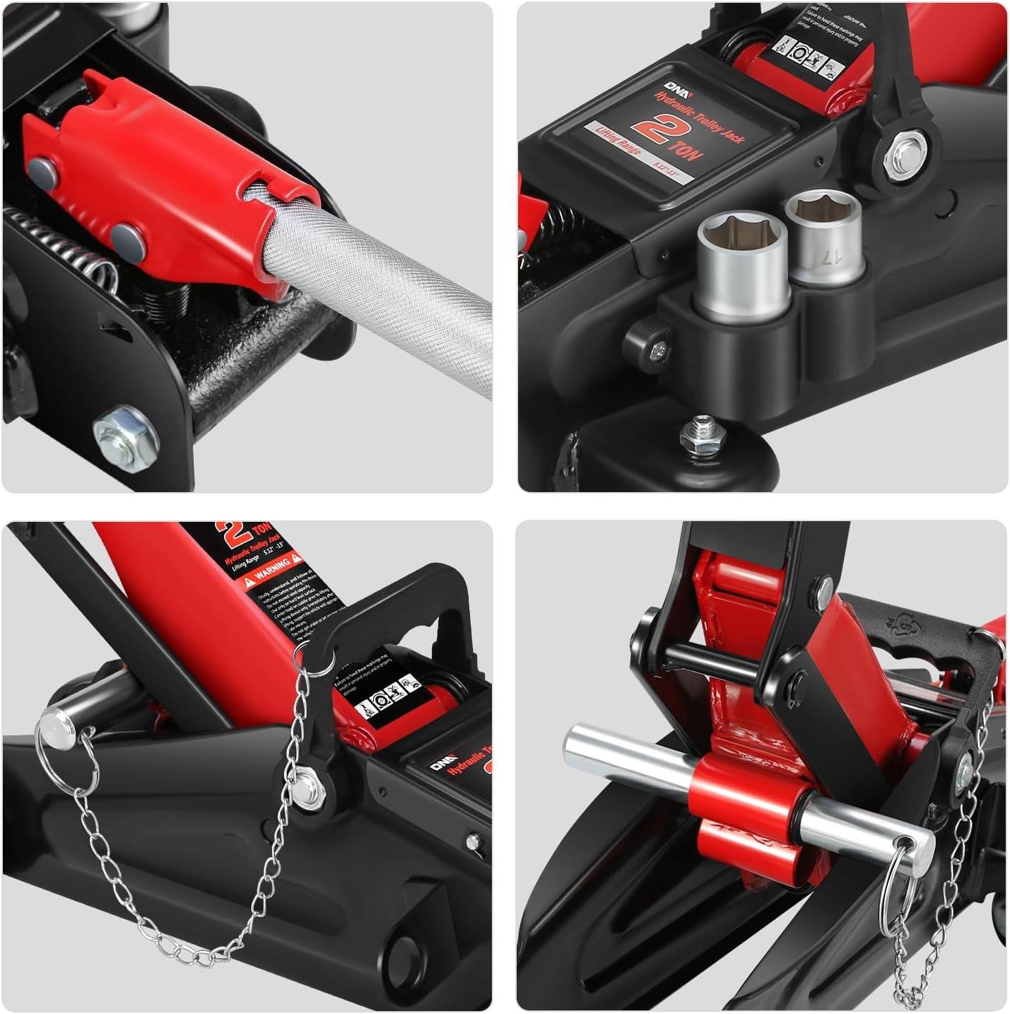 DNA MOTORING TOOLS-00234 Low Profile Hydraulic Trolley Service/Floor Jack, 2 Ton (4000 lbs) Capacity, Lifting Range 5.1″-13″, Black(Red)