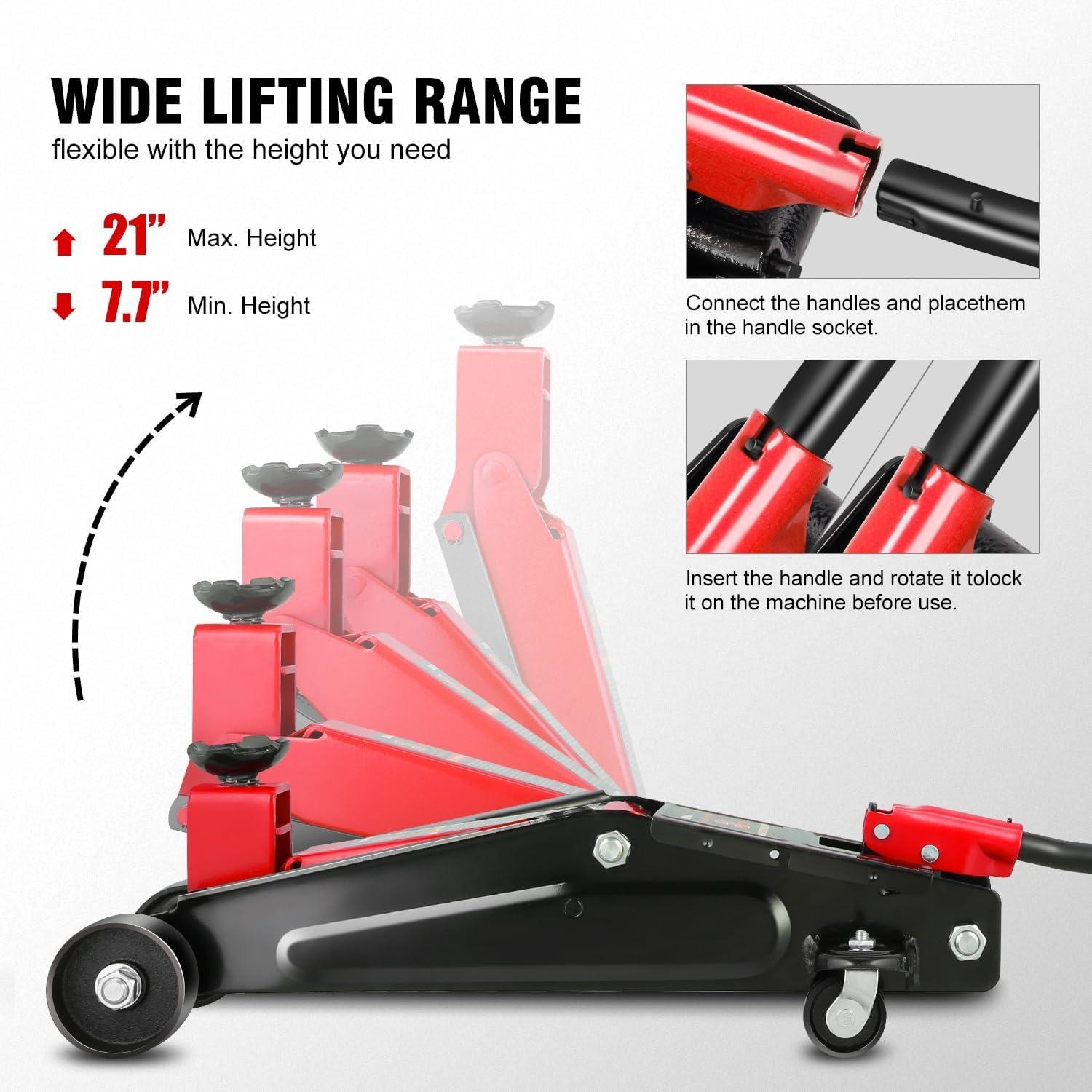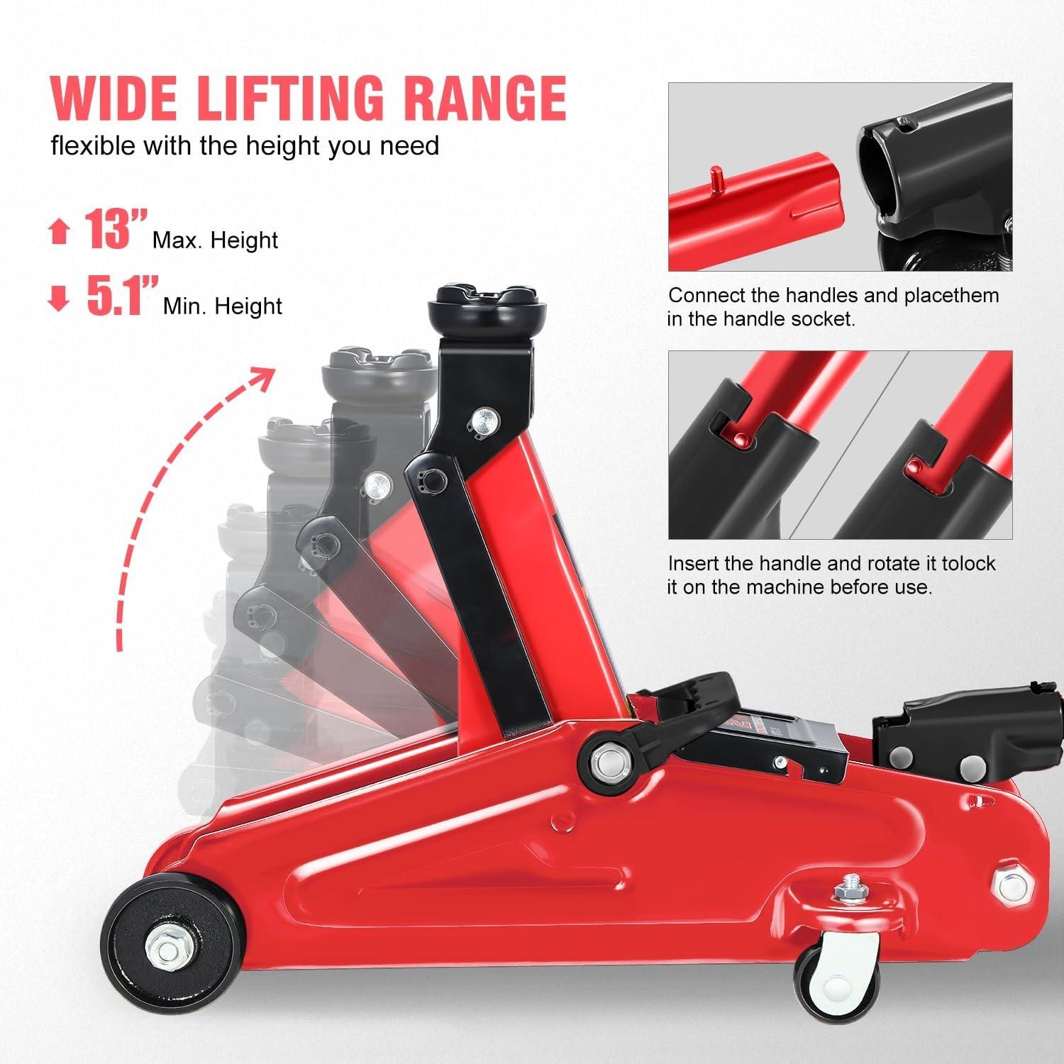 SPEEDY LIFT GARAGE JACK – This Hydraulic Trolley Jack features a 2 ton (4,000 lb) capacity with a min lifting height of 5.1″ and a max height of 13″. Allows you to easily lift the jack up to desired height, Great for garage service and heavy-duty industrial use.
