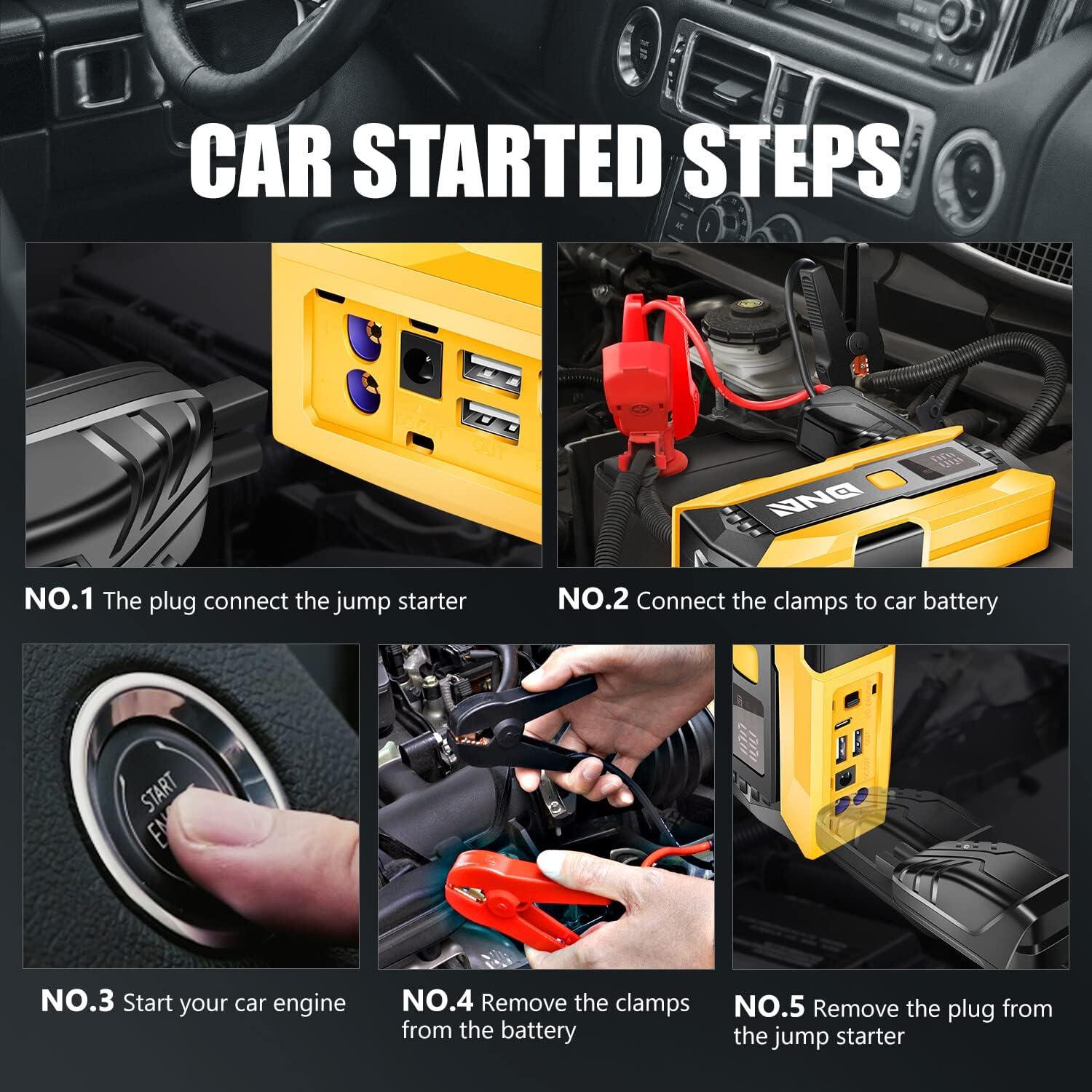 POWERFUL CAR JUMP STARTER – With a 1500A peak current, this car jump starter can start the 12V vehicles up to 7.0L Gas/5.5L Diesel engines in seconds. Suitable for cars, SUVs, trucks, vans, motorcycle or boat and so on.